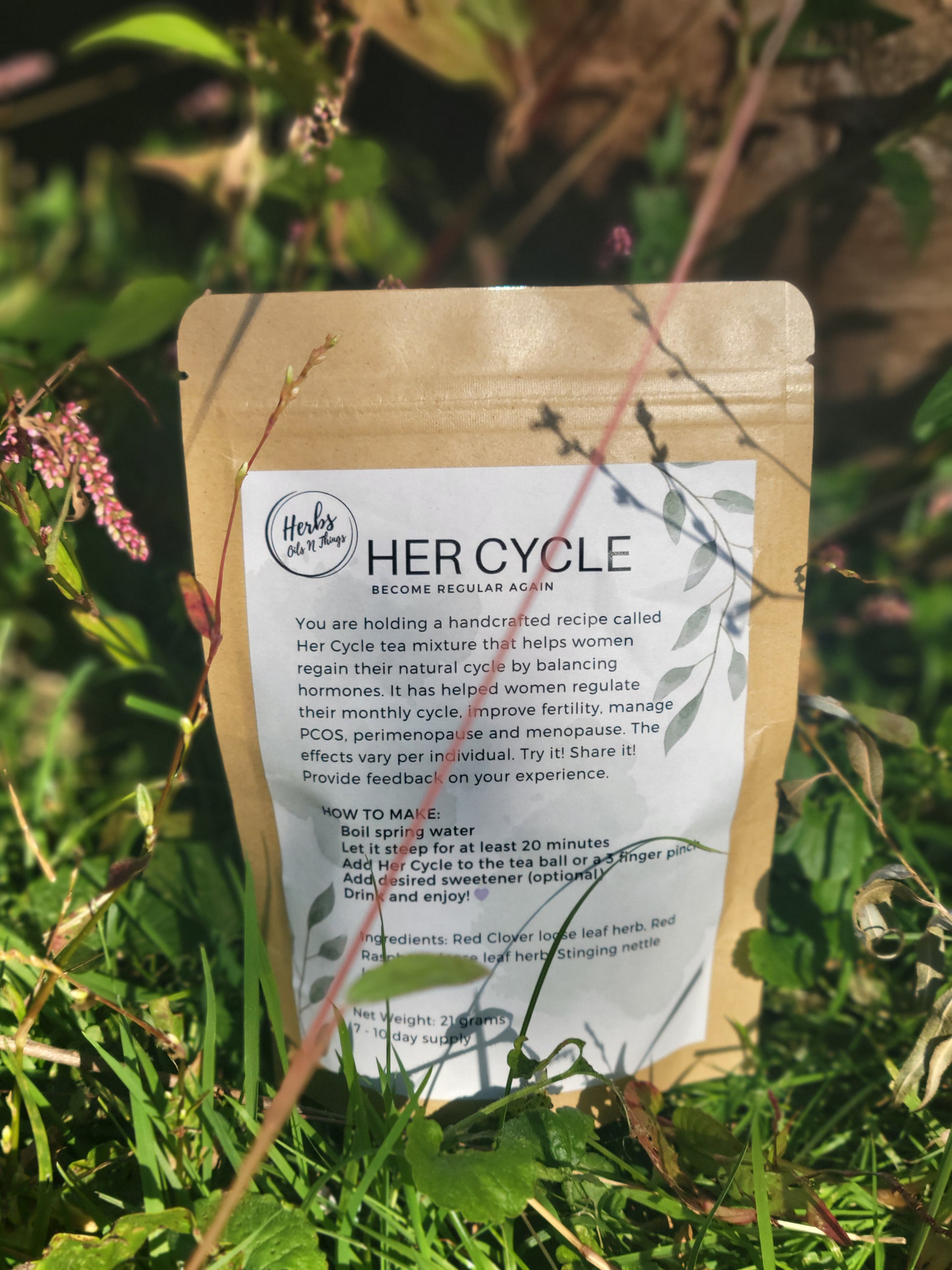 Her Cycle is a blend made specifically with women in mind. It combines herbs the help balance the hormones in her body to help her feel like herself again. This could be to help her cycle become regular again, her during the perimenopause phase and even when she goes through menopause.